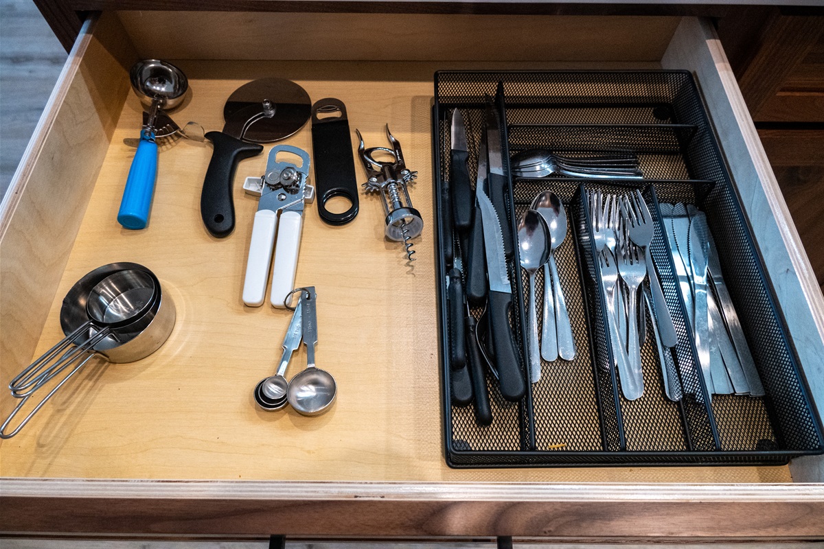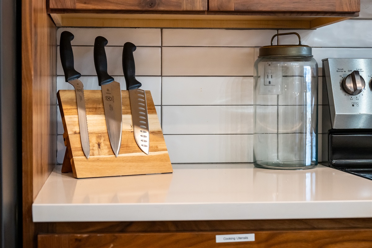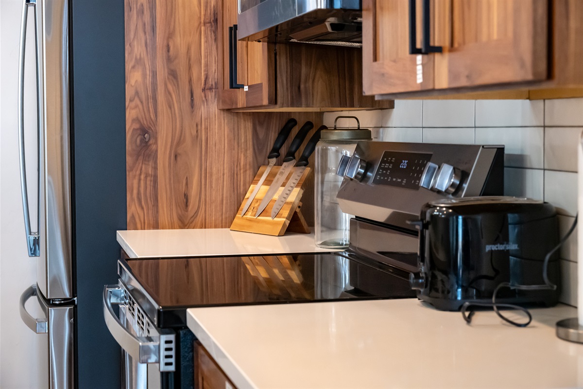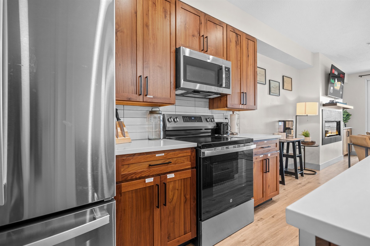 The fully equipped chef’s kitchen features high-end stainless appliances, generous counter space, and everything needed to prepare memorable group meals.