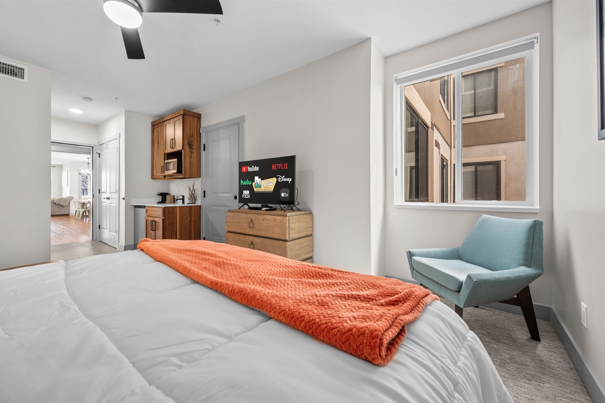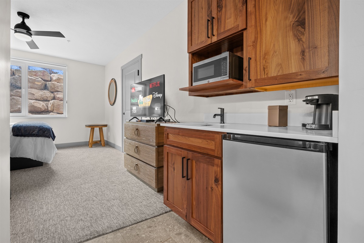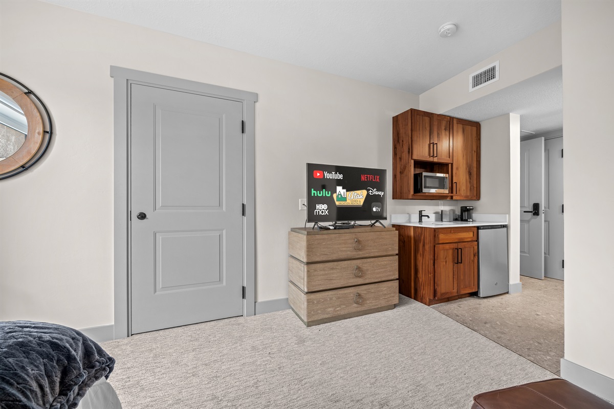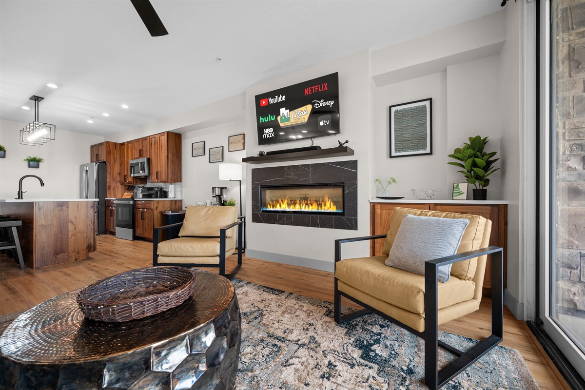 After a day of adventure, soak in the private hot tub as the sun sets over the mountains. Cozy up by the fireplace and stream your favorite shows,