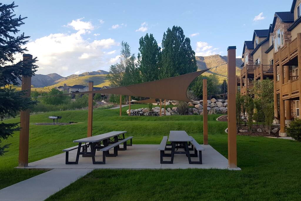 Guests also enjoy access to the Cascades at Wolf Creek community amenities, including a seasonal pool, year-round hot tubs, sauna, fitness center, disc golf course, and walking trails. The community game room offers air hockey, ping pong, foosball, and shuffleboard, and a convenient ski shuttle provides transportation to Powder Mountain and Snowbasin resorts.