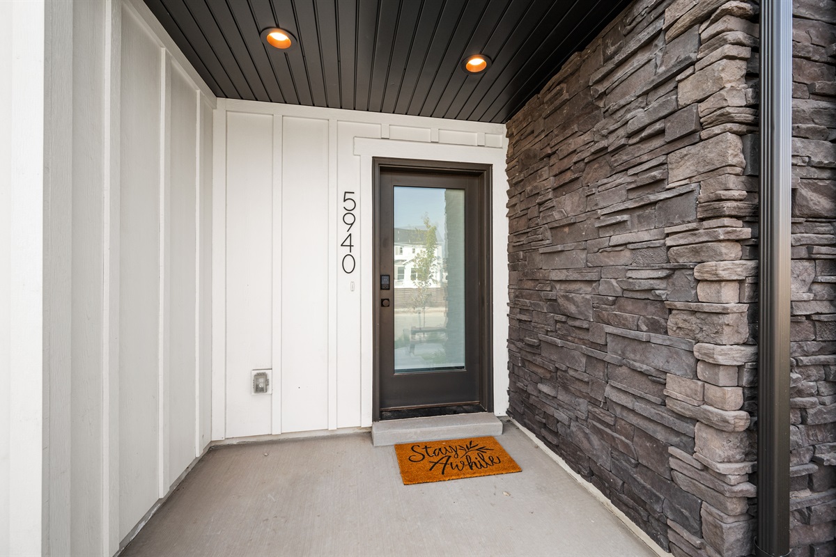 • With its modern lighting, windows, quartz countertops, and stunning backsplash, the kitchen makes preparing dinner a truly enjoyable experience.