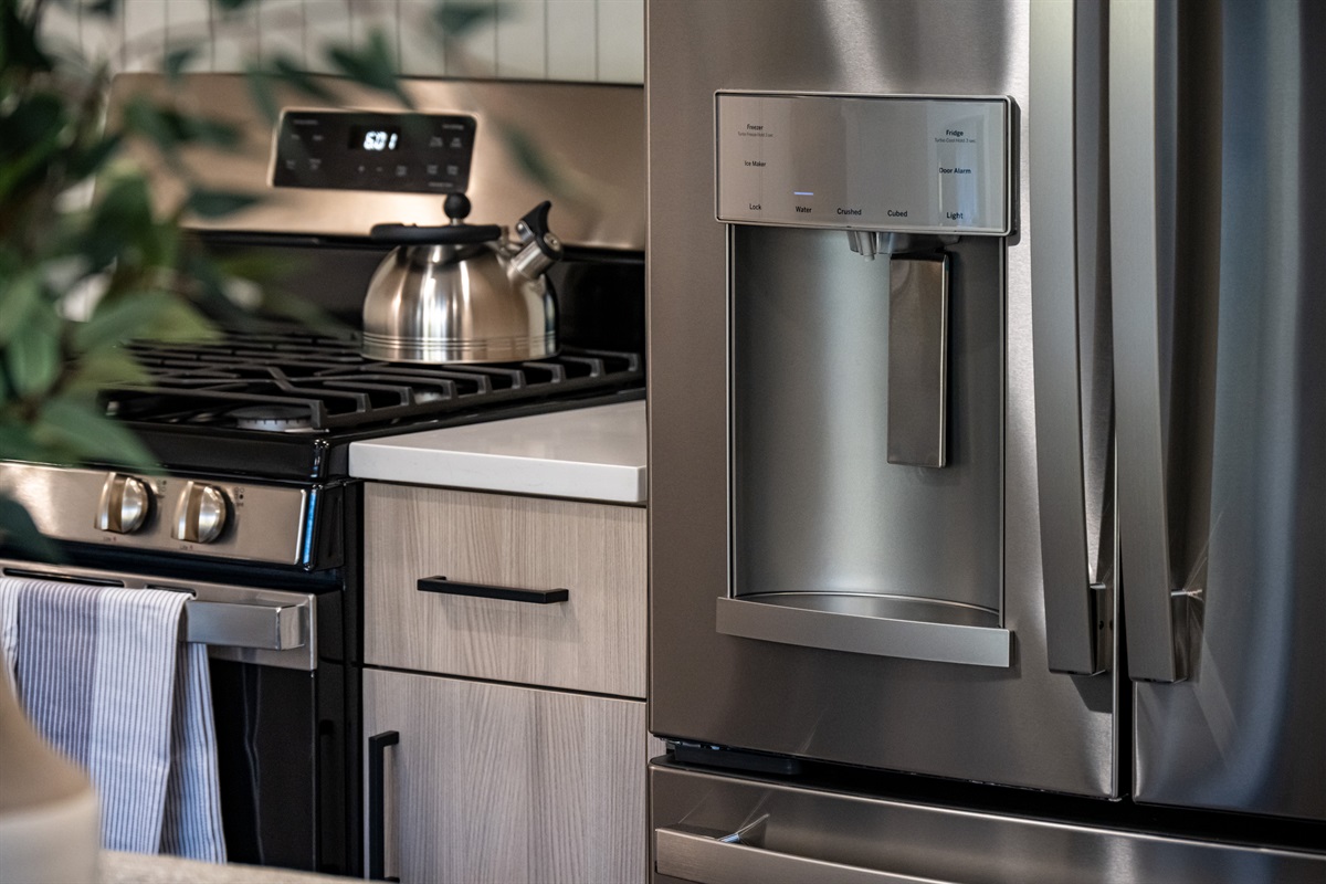 The cozy living area is designed for relaxation, featuring a warm electric fireplace, a large Smart TV, and breathtaking mountain views that bring the beauty of Eden indoors. The sofa is also a sofa bed allowing two additional guests. The well-appointed kitchen makes meal preparation effortless, offering a gas stove, a refrigerator with an ice maker, and all the cookware and dinnerware you’ll need. Whether you’re preparing a light snack or a full dinner, this space is ready to accommodate.