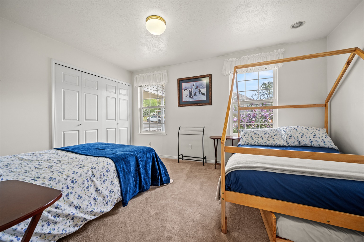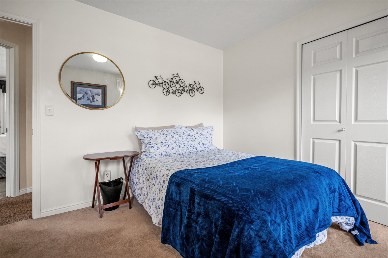 Main Level: The spacious main floor includes two bedrooms. The primary suite features a four-poster bed, fireplace, Smart TV, en-suite bath with a jacuzzi tub and walk-in shower, balcony access, and a walk-in closet. The second bedroom includes multiple beds, a floor mattress, and stunning mountain views. This level also features a guest bath, office, living room with a fireplace, dining area for six, and a chef’s kitchen with stainless steel appliances and island seating. Step out to the deck for outdoor dining with scenic mountain views.