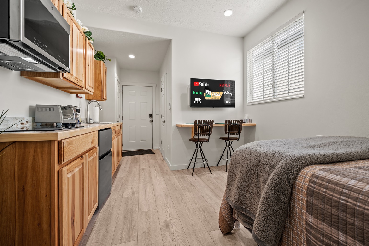 Studio Suite: A private, fully equipped retreat with its own bedroom, bath, and kitchen—accessed from the deck. Perfect for in-laws, couples, or guests seeking added privacy.