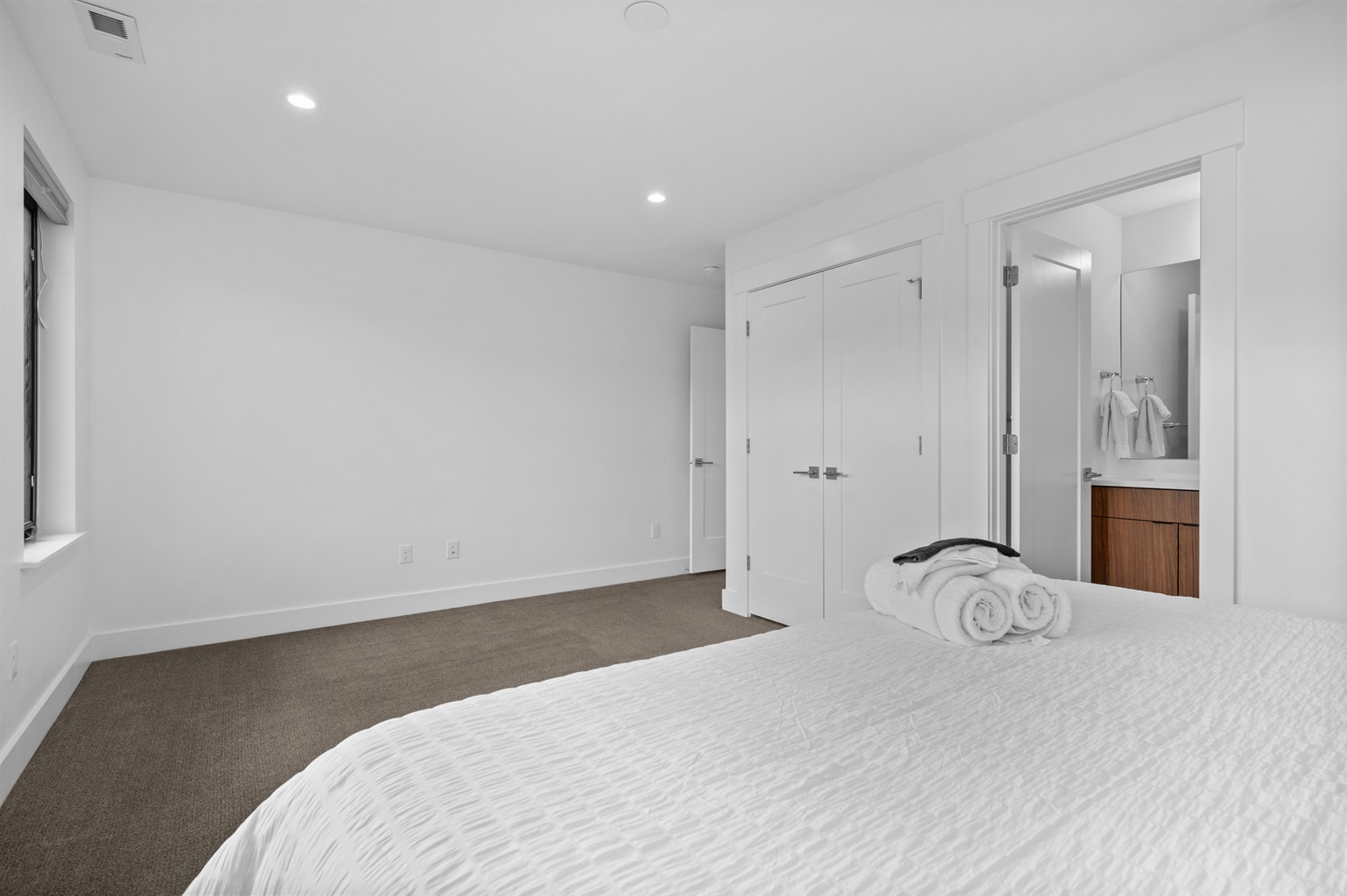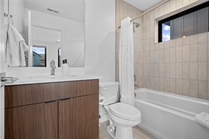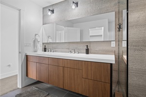 Upstairs, all three bedrooms are ensuite king retreats, each offering privacy, plush bedding, and spa-inspired bathrooms. The primary suite features a deep soaking tub, walk-in shower, and private balcony with sweeping lake views—a tranquil place to enjoy your morning coffee or unwind at sunset.