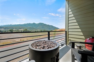 Amenities include 4 smart TVs, fireplace, free wifi, a balcony, a gas fire pit, a charcoal grill, and free use of the community amenities such as an outdoor pool during summer months, 2 hot tubs (year-round), Pickleball courts (2), Patio areas, and a ski shuttle to Snowbasin right from the development.