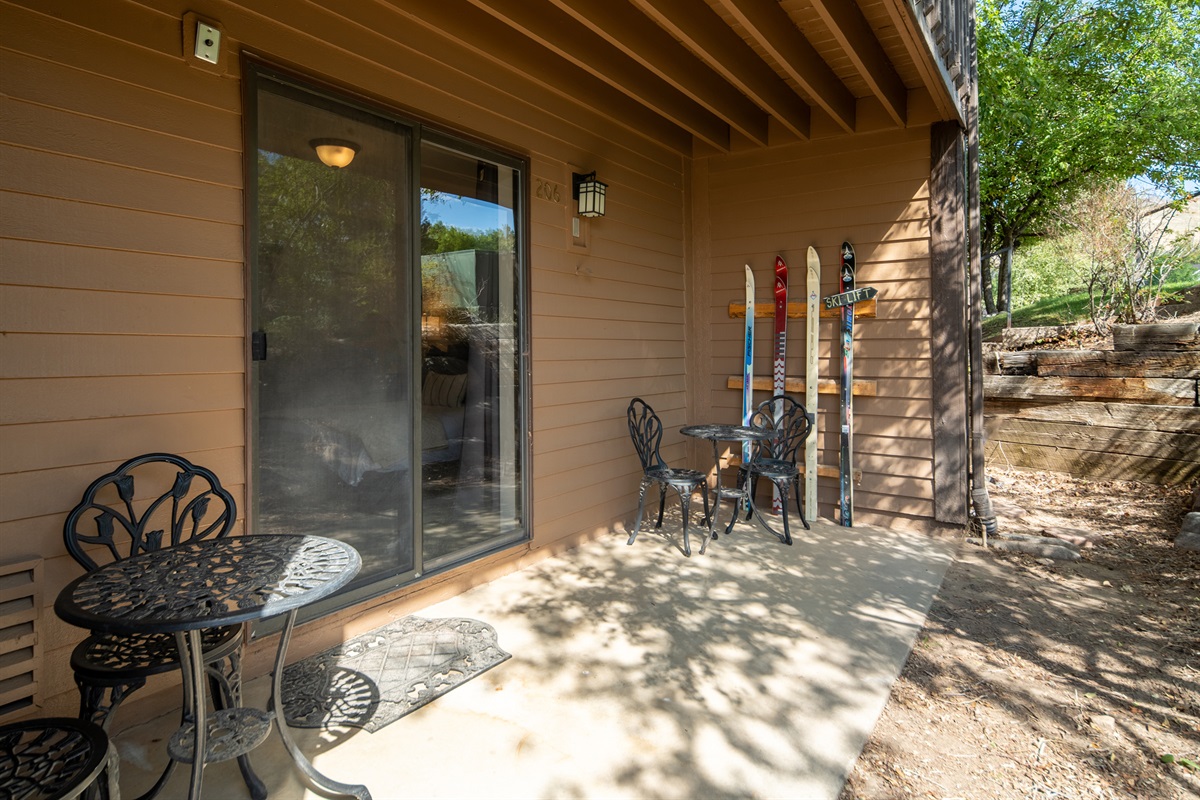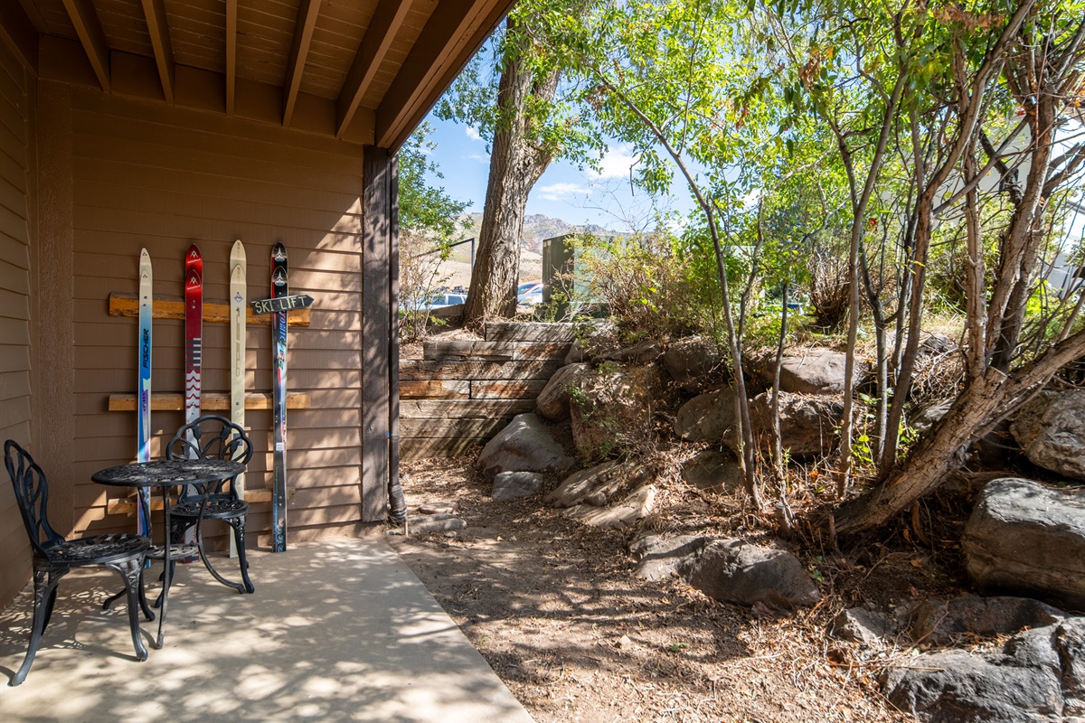 Step outside to your private patio, a quiet, tucked-away space surrounded by natural landscaping. It’s the perfect spot to enjoy fresh mountain air, sip your morning coffee, or relax in the evening.